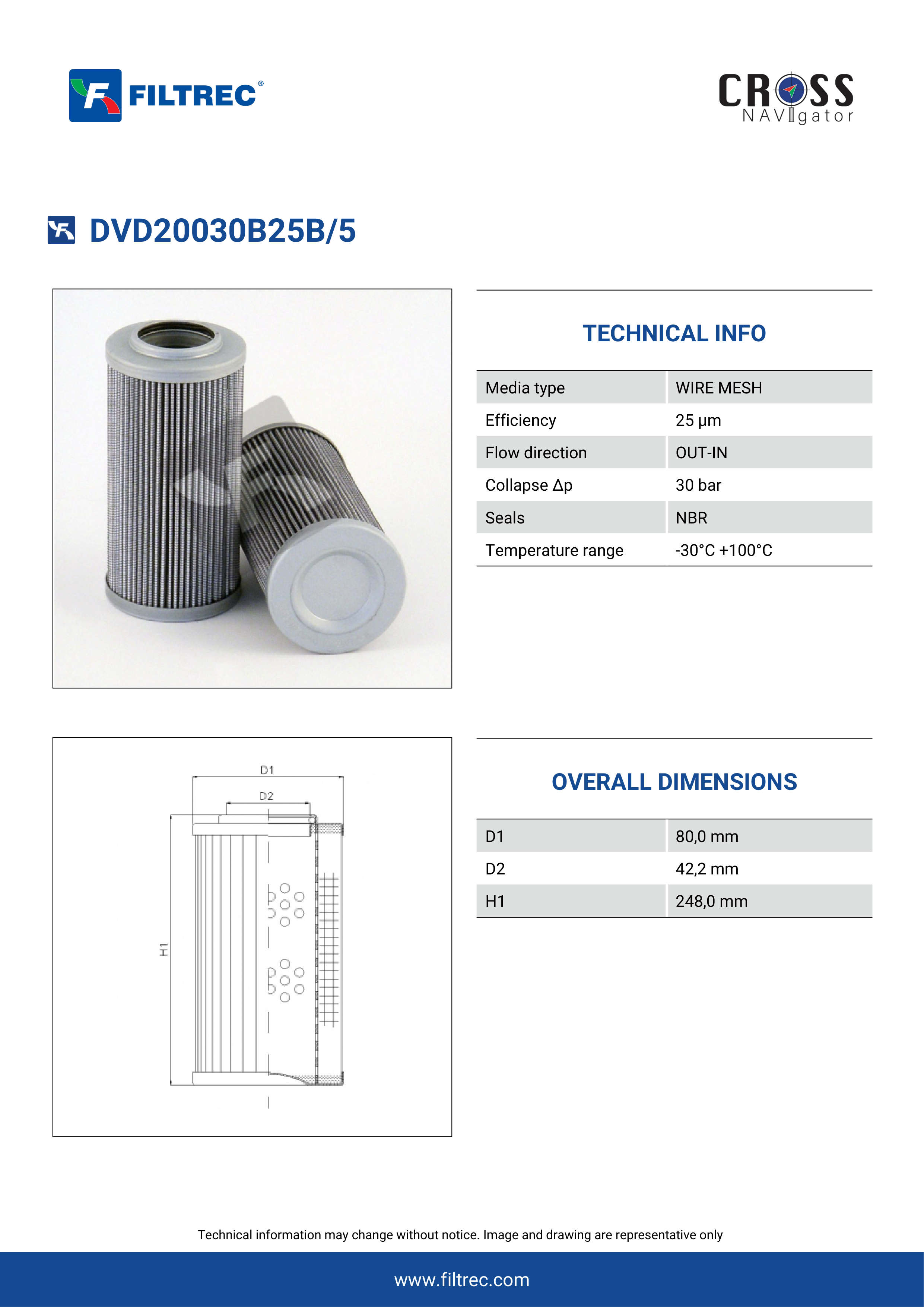 Genuine Filtrec DVD20030B25B/5. This Filtrec element is designed to meet or exceed the quality and performance of brand OEM’s ensuring superior filtration performance and long-lasting durability.