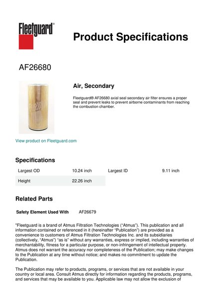 Genuine Fleetguard AF26680