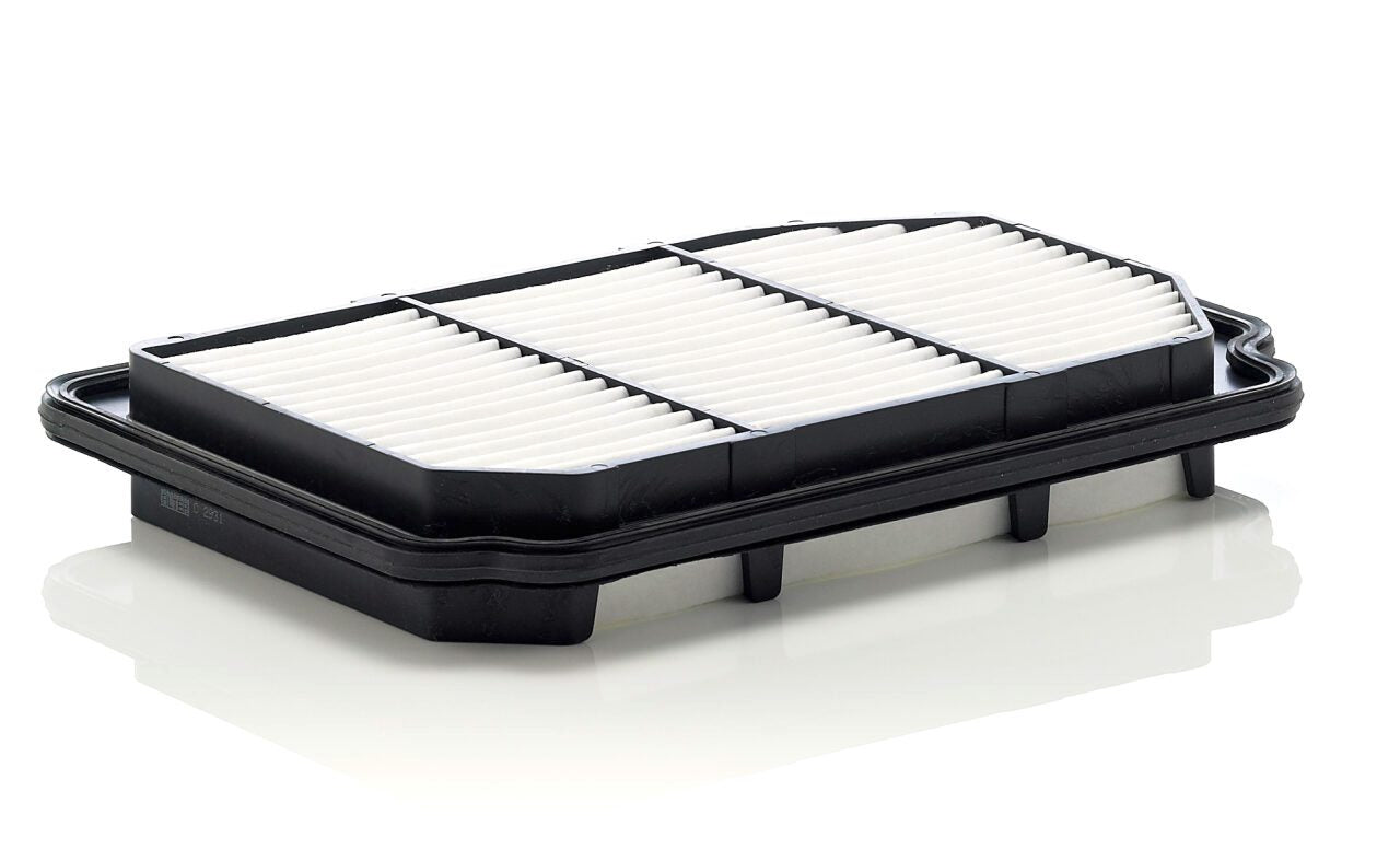 High-quality MANN-FILTER air filters for clean air intake and optimum protection for your engine, mass air flow sensor & other sensitive components / They meet requirements of modern engine technology. Highest dirt holding capacity and dirt separation efficiency, low flow resistance and high pleat stability ensure functional reliability during the entire service interval.