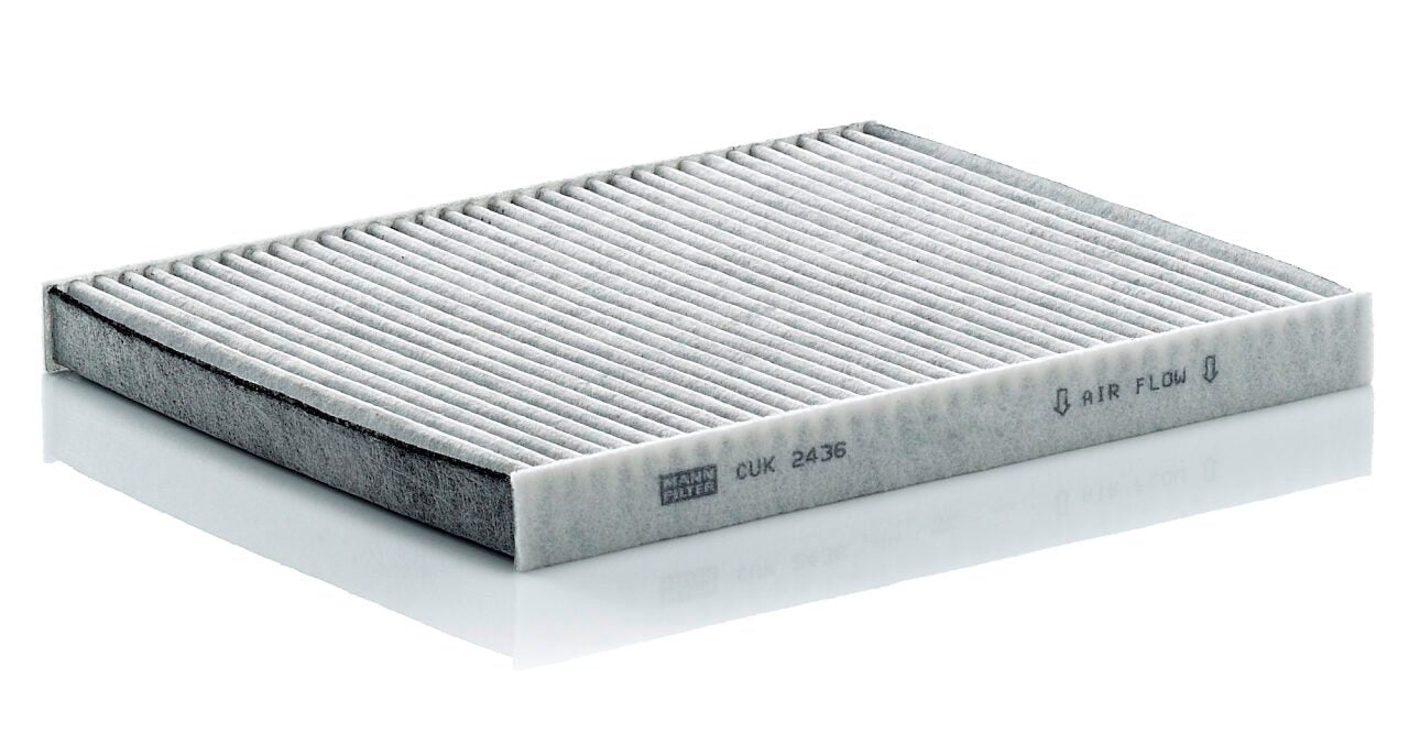 High-quality MANN-FILTER cabin filters with active carbon - nearly 100% protection from particles like pollen, diesel soot & tyre abrasion / Additional protection from harmful gases & unpleasant odour. The trated highly-effective activated carbon gives protection against harmful gases such as ozone, nitrogen oxide or sulphur dioxide and eliminates unpleasant odours during the entire service interval.
