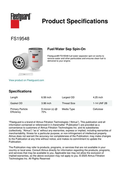Genuine Fleetguard FS19548