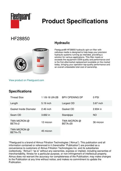 Genuine Fleetguard HF28850