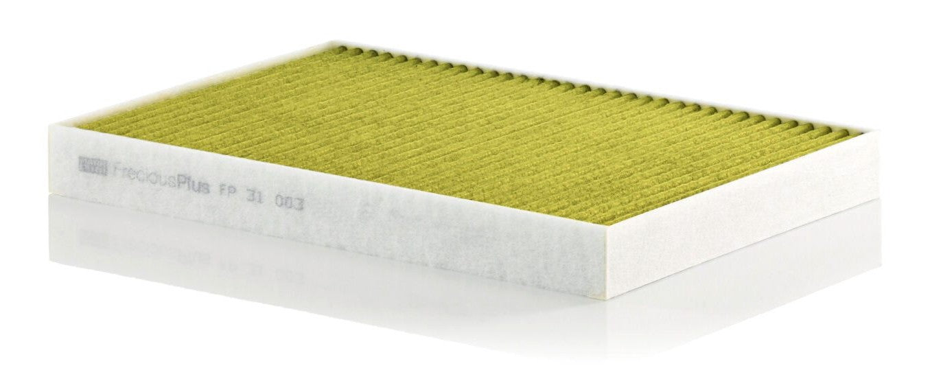 Biofunctional MANN-FILTER FreciousPlus cabin air filters - nearly 100% protection against nitrogen oxides, dust, allergens and mould - harmful gases and unpleasant odours are also eliminated and virus aerosols filtered. The three-layer filter technology absorbs almost 100% of allergens, reduces the growth of molds and bacteria by more than 98% and stops fine dust almost completely.Specification
